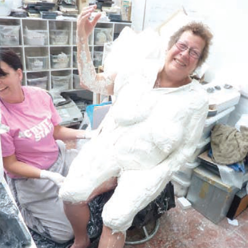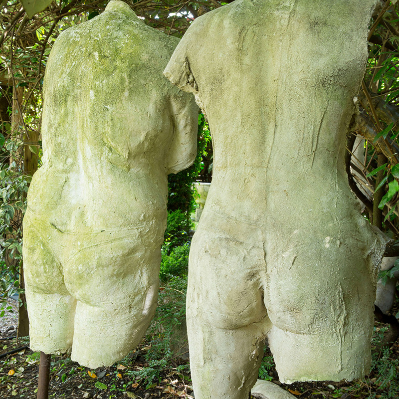 IN AN ATTEMPT TO HONOUR AND RECOGNISE THE WORKING WOMEN OF HER LONDON SUBURB, JUDY CAST THEIR BODIES, PRESENTING THEM ON PEDESTALS AMID THE LEAVES. ALL AGES, ALL SIZES, ALL RACES, ALL NUDE AND ABSTRACTED, ALL FACING THE WEATHER, AND ALL PROUD.